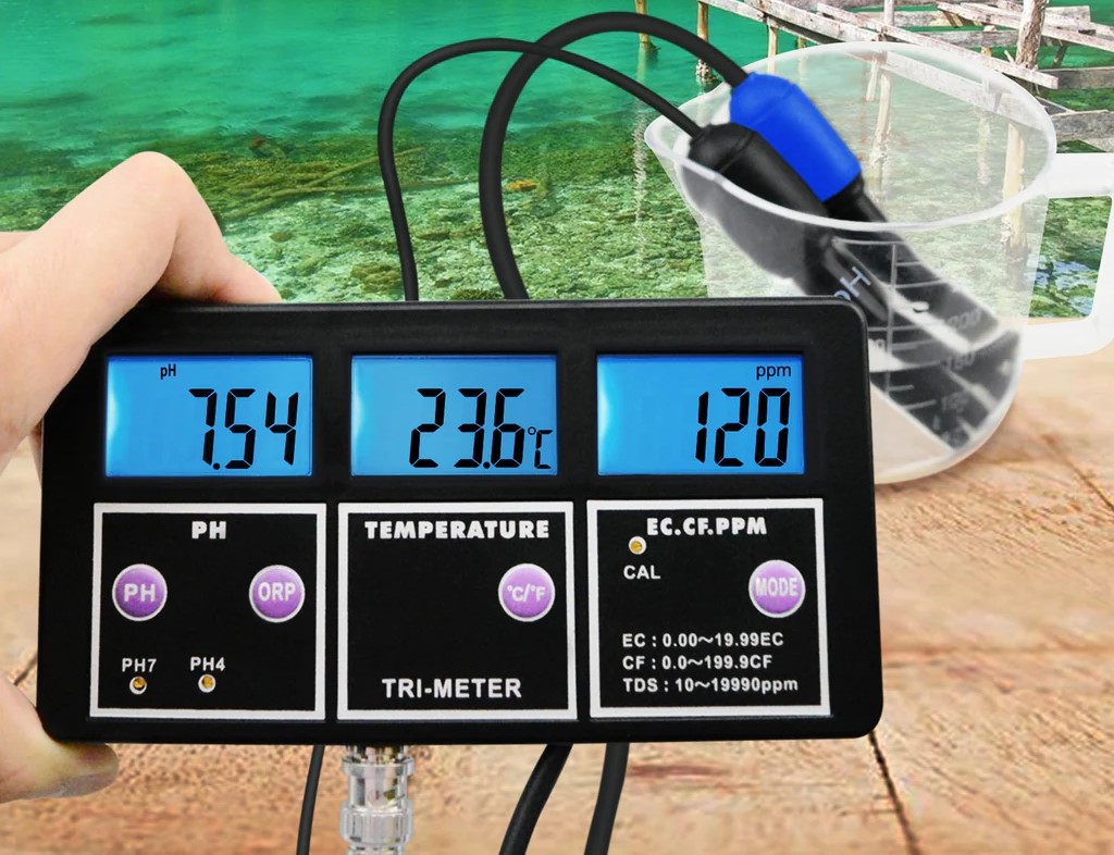 - EC متر، pH متر، TDS متر: دستگاههای دیجیتال یا آنالوگ قابل حمل