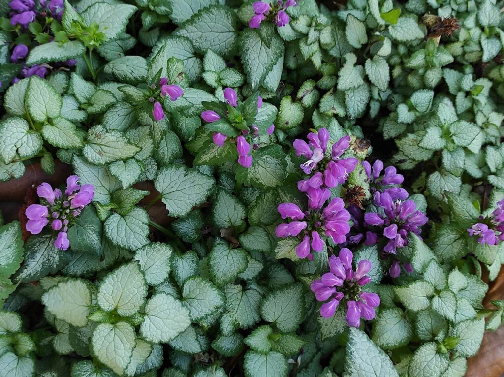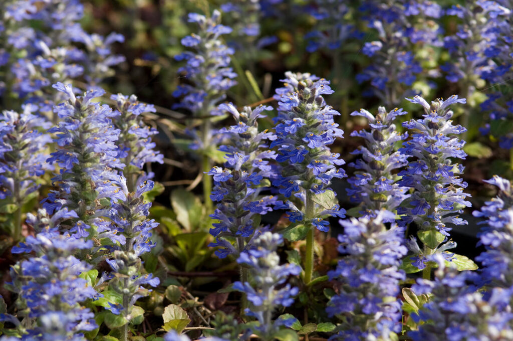این گیاه چندساله مقاوم به‌سرعت رشد می‌کند و زمین را با شاخ و برگ‌هایی به رنگ‌های سبز نعنایی تا زرشکی، اغلب با لکه‌های صورتی یا سفید می‌پوشاند. سنبله‌های گل‌های نمایشی (آبی تیره، صورتی یا سفید) از اواخر بهار تا اوایل تابستان شکوفا می‌شوند. پس از پژمرده شدن گل‌ها، گیاه را تا سطح زمین هرس کنید تا شاخ و برگ تازه تشویق به رشد شوند.