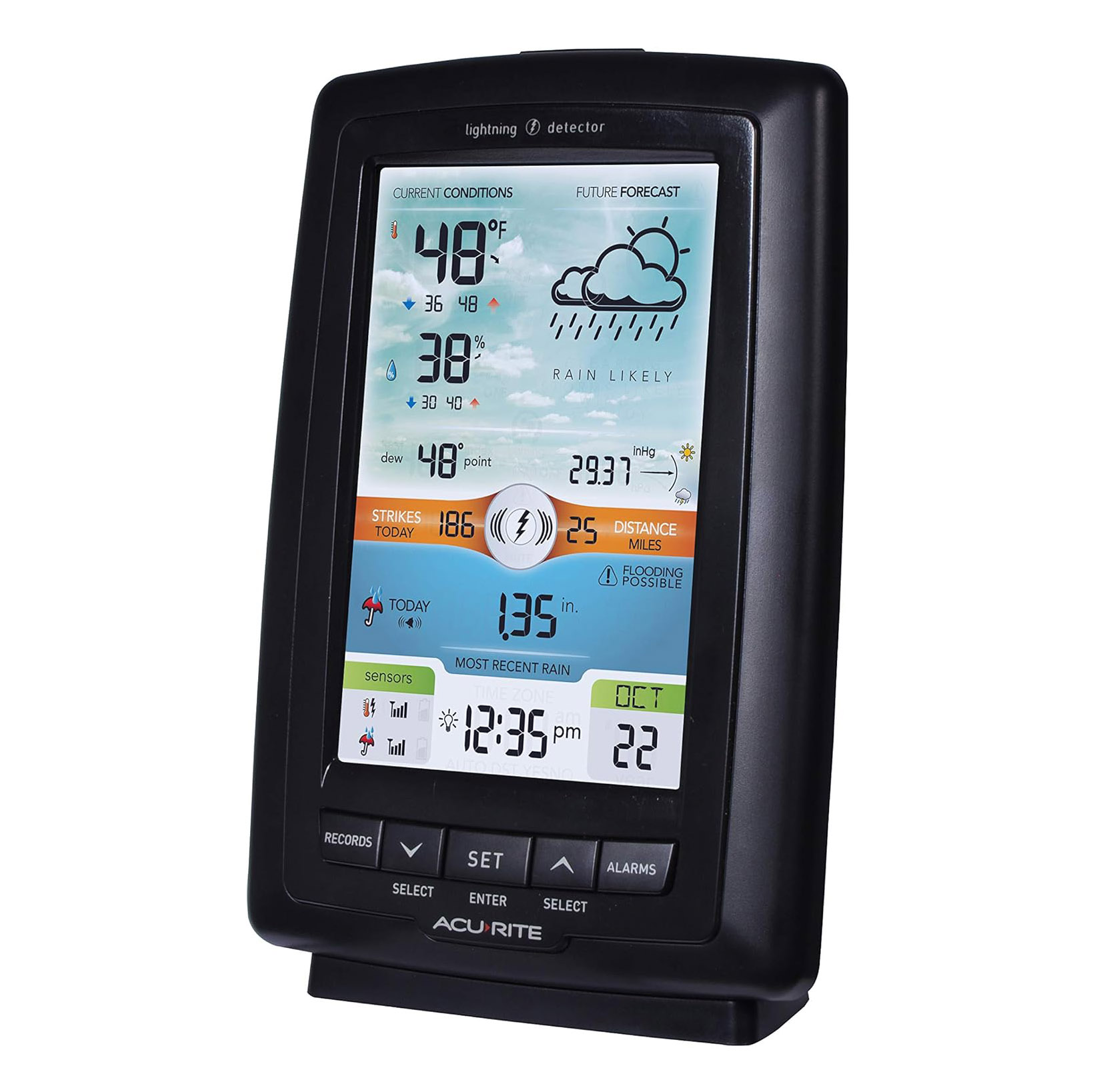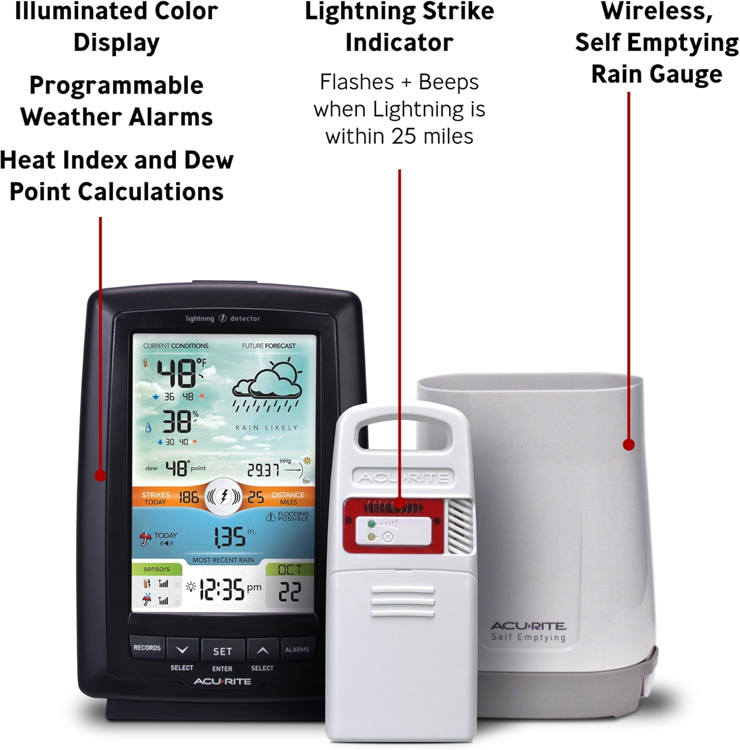 مدل AcuRite 01021M نسل جدید ایستگاههای هواشناسی خانگی و نیمهحرفهای از برند معتبر AcuRite (ساخت آمریکا) است. این دستگاه با ترکیب چند حسگر دقیق، دادههای مربوط به بارش، دمای محیط، رطوبت، میزان صاعقه و فاصله تقریبی آن را بهصورت زنده ارائه میکند.