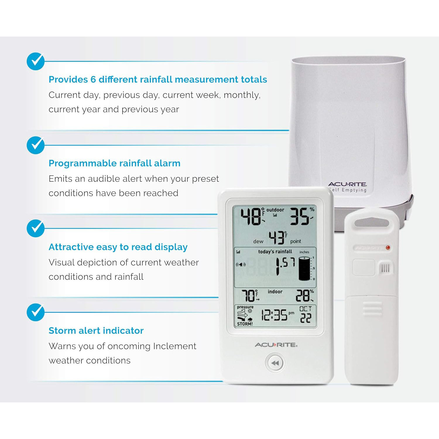 ایستگاه هواشناسی و باران‌سنج دیجیتال بیسیم AcuRite 01089M از برند معروف و با سابقه آمریکایی، یک دستگاه پیشرفته برای اندازه‌گیری دقیق میزان بارش، دمای محیط و رطوبت هواست.