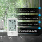 این دستگاه با طراحی هوشمند و سیستم تخلیه خودکار (Self-Emptying Rain Collector)، یکی از دقیق‌ترین ابزارهای سنجش میزان بارش، دما و رطوبت محیط به‌شمار می‌رود. این دستگاه داده‌های بارش را به‌صورت بی‌سیم به نمایشگر داخلی منتقل می‌کند و به شما امکان می‌دهد میزان بارش امروز، دیروز، هفته، ماه و سال را مشاهده کنید. همچنین دارای آلارم شروع بارش، هشدار احتمال سیلاب و شاخص هشدار طوفان (Storm Alert) است که در هنگام تغییر فشار هوا شما را از احتمال وقوع طوفان آگاه می‌کند.