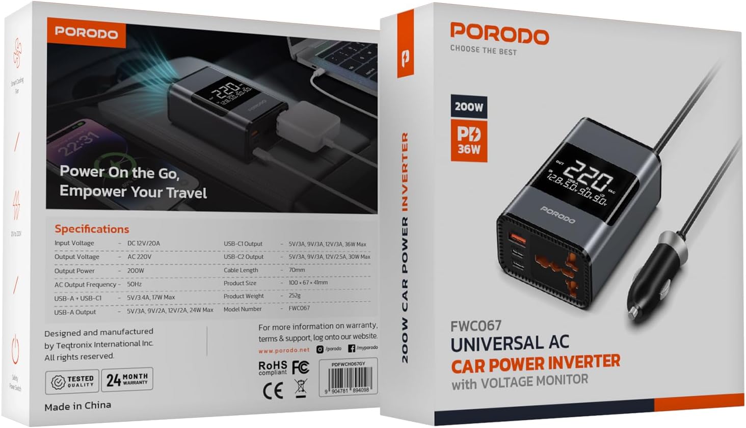 اگر به دنبال یک مبدل برق خودرو با کیفیت ساخت بالا و کارایی چندمنظوره هستید، اینورتر پرودو Porodo Universal AC Power Inverter FWC067 همراه مطمئن شما در هر سفر خواهد بود.