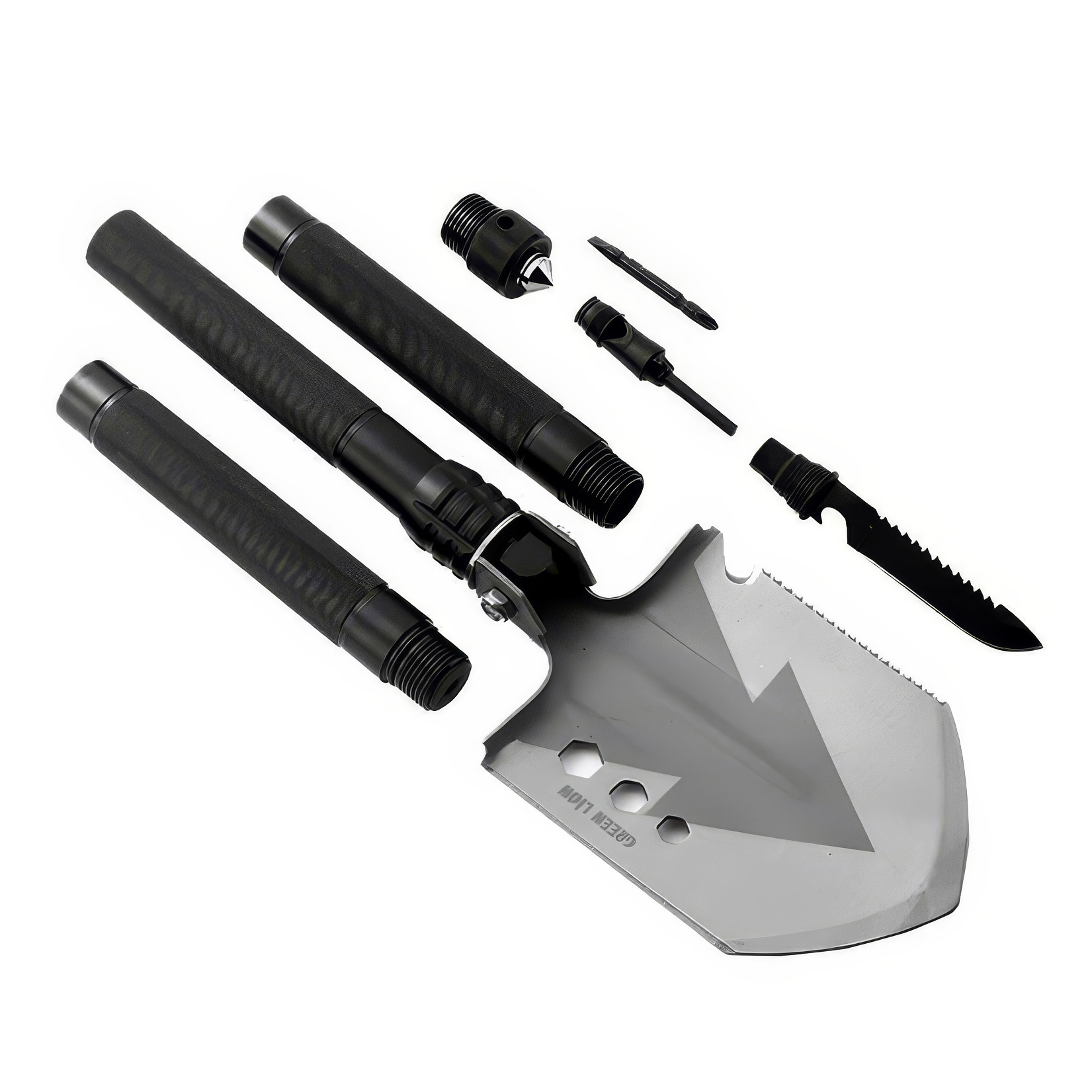 بیل 14 کاره گرین لاین مدل Green Lion Multitool Shovel GNMLTSHLBK بیل چندمنظوره گرین لاین مدل GNMLTSHLBK یک ابزار دوکاره و چندمنظوره است که علاوه بر عملکرد بیل، مجموعهای از ابزارهای مفید دیگر را نیز در خود جای داده تا برای موقعیتهای مختلف آماده باشید. طراحی این ابزار بهگونهای است که میتواند در کمپ، طبیعتگردی، سفر، شرایط اضطراری و حتی کارهای تعمیراتی مورد استفاده قرار گیرد.این ابزار از فولاد ضد زنگ 420 و آلیاژ آلومینیوم ساخته شده است تا علاوه بر استحکام بالا، مقاومت در برابر خوردگی و زنگزدگی داشته باشد، بهطوری که حتی در شرایط سخت محیطی و استفاده طولانیمدت نیز دوام خوبی از خود نشان میدهد.