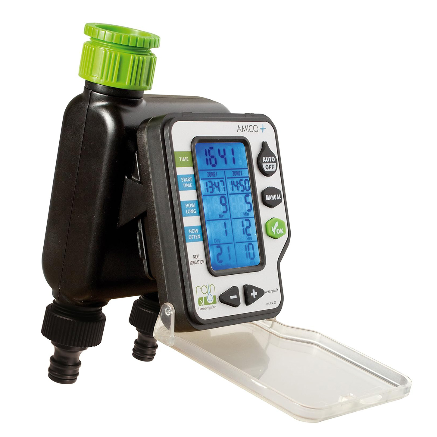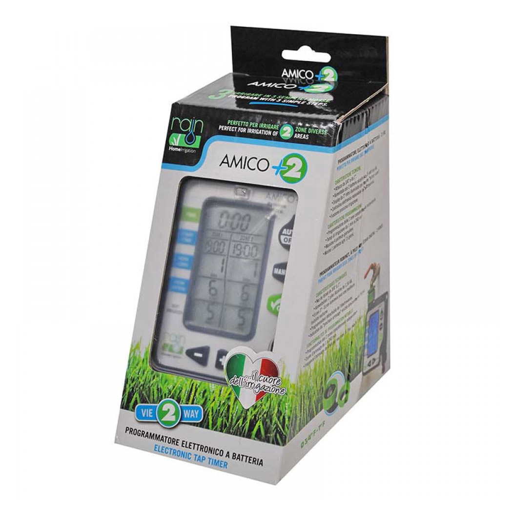 Amico+2 با رابط کاربری بسیار ساده، صفحهنمایش بزرگ با نور پسزمینه و طراحی ضدآب از جنس پلاستیک مهندسی ABS، گزینهای ایدهآل برای فضاهای بیرونی مانند تراس، حیاط یا باغچههای خانگی است. واحد کنترلی قابل جدا شدن، نصب آسان و عملکرد دقیق از دیگر ویژگیهای این تایمر است.