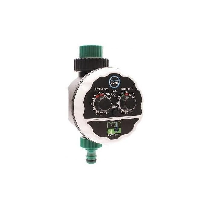 تایمر Rain Zero Pressure یک دستگاه ساده و قابل اعتماد برای مدیریت آبیاری باغچهها و تراسهای خانگی است که حتی در شرایط فشار بسیار کم یا صفر نیز بهخوبی عمل میکند. این تایمر با داشتن سوپاپ توپی (Ball Valve)، جریان آب را بدون افت فشار کنترل میکند و همین ویژگی آن را برای سیستمهای آبیاری قطرهای ایدهآل میسازد. نصب آن بسیار آسان است و تنها با قرار گرفتن روی شیر آب قابل استفاده خواهد بود. کاربر میتواند به کمک دو ولوم چرخشی، فاصله بین آبیاریها (از هر ساعت تا هفت روز) و مدت زمان آبیاری (۱ تا ۱۲۰ دقیقه) را بهسادگی تنظیم کند. همچنین امکان تاخیر در شروع آبیاری تا دو ساعت وجود دارد و در صورت نیاز میتوان از عملکرد استارت دستی نیز استفاده کرد. این تایمر با دو باتری AAA کار میکند و دارای هشدار باتری ضعیف است تا عملکرد آن بدون وقفه ادامه یابد. از دیگر ویژگیها میتوان به مصرف پایین باتری، مقاومت در برابر فشار تا ۸ بار، دبی جریان مناسب (۵ تا ۳۰ لیتر در دقیقه) و اتصالات استاندارد 3/4 اینچ اشاره کرد. در مجموع، این تایمر گزینهای کاربردی، اقتصادی و بادوام برای کسانی است که به دنبال یک راهکار مطمئن و بدون دردسر برای آبیاری روزمره گیاهان خود هستند.