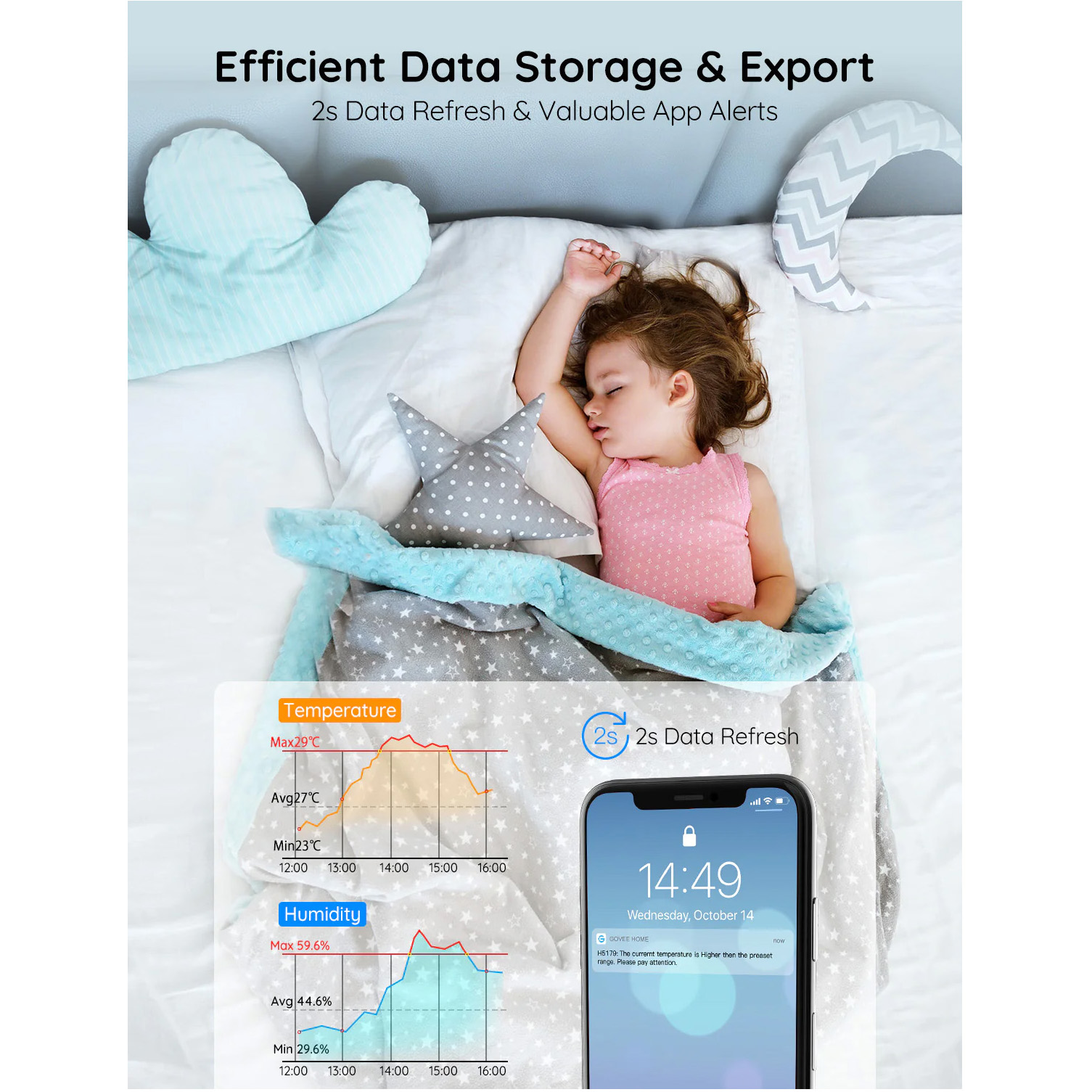 یکی از مزیتهای مهم این مدل، امکان مشاهده و مدیریت اطلاعات از راه دور از طریق Wi-Fi است. شما میتوانید از هر نقطه وضعیت محیط را ببینید، محدوده دلخواه برای دما و رطوبت تنظیم کنید و در صورت خروج از آن محدوده، هشدار فوری روی گوشی دریافت کنید.