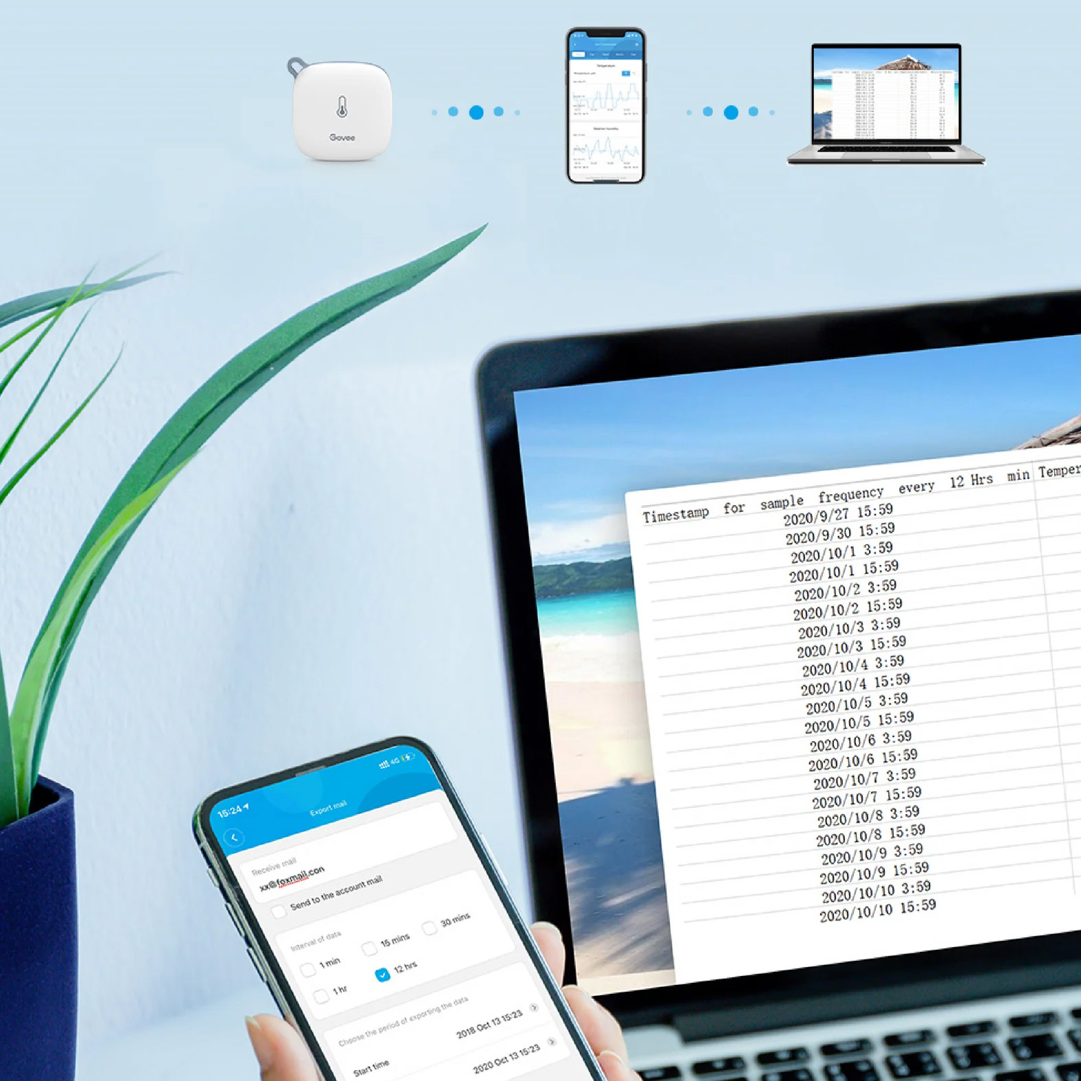 Govee H5179 یک دستگاه پیشرفته برای پایش دما و رطوبت با قابلیت اتصال دوگانه Wi-Fi و بلوتوث است که دادهها را بهصورت لحظهای در اپلیکیشن Govee Home نمایش میدهد. این مدل از حسگر دقیق ساخت سوئیس استفاده میکند و با دقت بالا (تا ±0.3°C در دما و ±3% در رطوبت) تغییرات محیط را ثبت میکند.