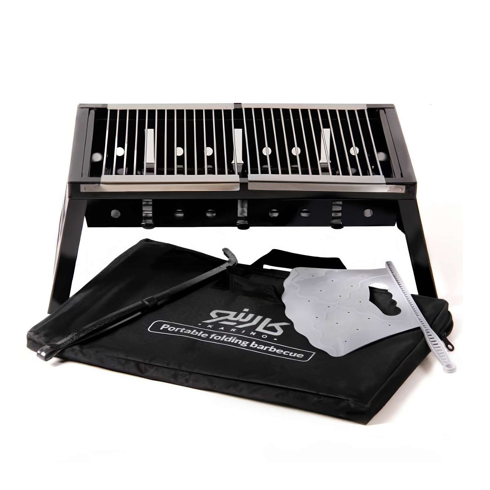 منقل سفری کارینو Karino  با طراحی جمع‌شونده و فلزی، انتخابی عالی برای آن دسته از افراد است که به راحتی و سبک‌سری در فعالیت‌های فضای باز اهمیت می‌دهند. بدنه فلزی آن از مقاومت عالی در برابر حرارت برخوردار است و ابعاد به‌گونه‌ای انتخاب شده که حمل و نقل آن در ماشین، وانت یا باربند آسان باشد. طراحی آن بواسطه داشتن توری قابل باز و بسته شدن به گونه ای است که هم برای کباب و هم گریل میتوان استفاده نمود. همچنین در زمان باز بودن توری میتوان کتری و قابلمه روی ان قرار داد .طراحی ارگونومیک آن باعث می‌شود پس از جمع شدن، فضای کمی اشغال کند، بنابراین برای سفرهای جاده‌ای، پیک‌نیک، کمپینگ، یا حتی استفاده در بالکن منزل هم مناسب است.