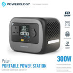 پاور استیشن پاورولوژی 300 Powerology Pater  یک منبع برق قابل‌حمل با طراحی مدرن و وزن سبک است که برای سفر، کمپینگ، استفاده در خودرو، یا شرایط اضطراری طراحی شده است. این پاور استیشن با توان خروجی 300 وات پیوسته و ظرفیت 236.25 وات‌ساعت، قادر است انواع دستگاه‌های الکترونیکی روزمره مانند لپ‌تاپ، موبایل، تبلت، دوربین، چراغ، اسپیکر و حتی برخی وسایل خانگی کم‌مصرف را شارژ یا تغذیه کند.طراحی ظاهری دستگاه ترکیبی از رنگ خاکستری تیره و مشکی مات است که ظاهری مقاوم و حرفه‌ای به آن داده است. بدنه از پلاستیک مقاوم و ضد‌حرارت ساخته شده و دستهٔ بالایی ارگونومیک، حمل‌ونقل آن را آسان می‌سازد. وزن دستگاه حدود ۲٫۶ کیلوگرم است که نسبت به ظرفیت و توان خروجی، بسیار مناسب و قابل‌حمل به شمار می‌رود.