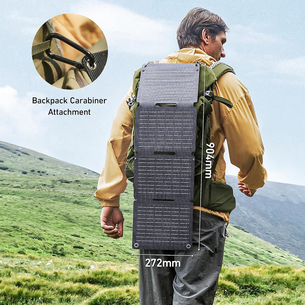 یکی از نقاط قوت این محصول طراحی تاشو و جمع‌وجور آن است. در حالت تا شده ابعادی برابر با ۲۷۲×۲۲۴×۴۳ میلی‌متر دارد و در حالت باز به ۹۰۴×۲۷۲×۱۸ میلی‌متر می‌رسد. وزن سبک ۱.۱ کیلوگرم باعث می‌شود به‌راحتی در کوله‌پشتی یا صندوق خودرو جا شود. پایه‌ی پشتی قابل تنظیم است و امکان تنظیم زاویه برای دریافت حداکثر تابش خورشید را فراهم می‌کند.